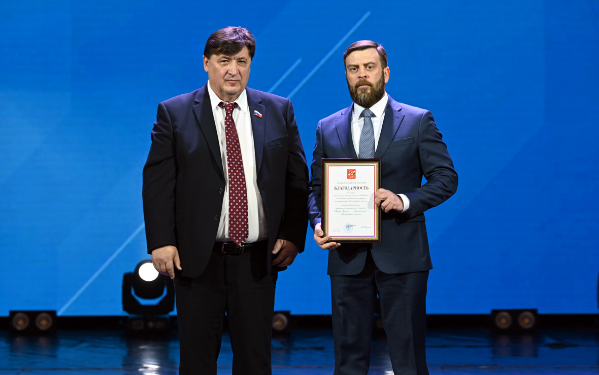 Награду исполняющему обязанности директора филиала Кириллу Юткину вручил председатель Белгородской областной Думы Юрий Клепиков.