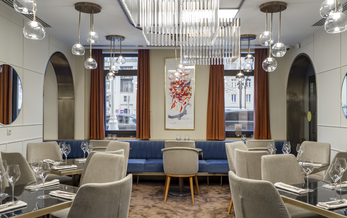 Обновленный интерьер Marble вдохновлен эстетикой Америки 30-х годов — эпохи, когда рестораны были эпицентром жизни, а ужин вне дома превращался в ритуал. Мягкий золотой свет скользит по барной стойке, отражаясь в зеркалах, обрамленных латунью, глубокие кресла цвета темного сапфира и алого рубина приглушают шум города, а легкие геометричные линии ар-деко придают пространству ощущение движения. Атмосфера напоминает кадр из старого фильма: красиво, немного театрально, но живо.